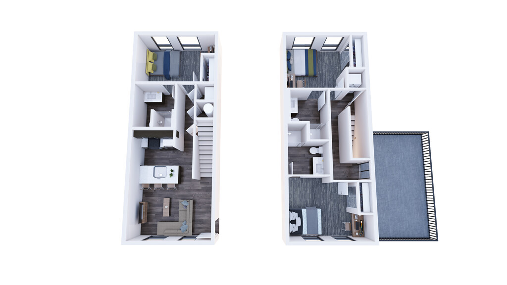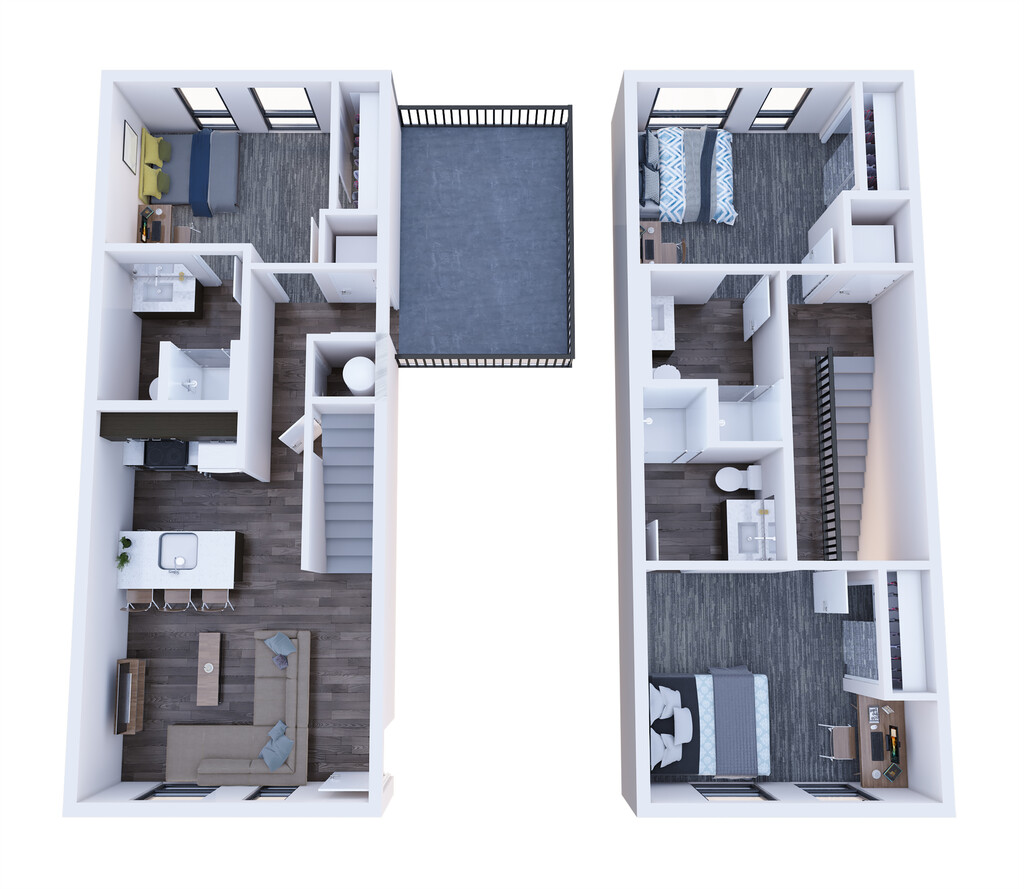 3x3 B - Floorplan 1 Apartment Unit: PrivateApartment Model: 3x3 B$7693 Bedroom, 3 Bath, up to 982 sq ftAvailable August 13, 20263x3 B3 Townhouse
