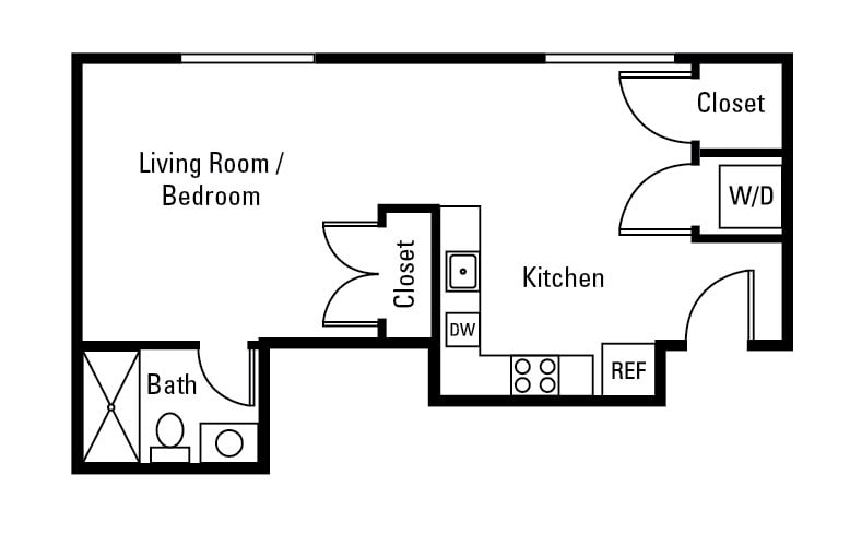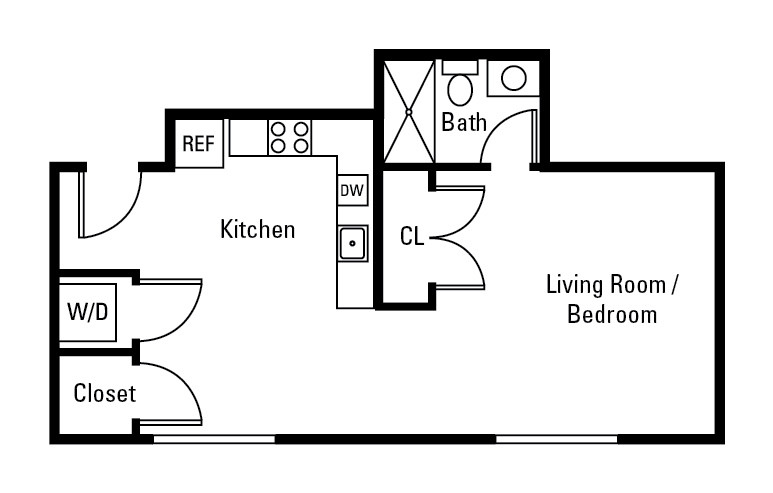 Studio, 1 Bath 432 sq. ft. - Floorplan 2 1 Bedroom