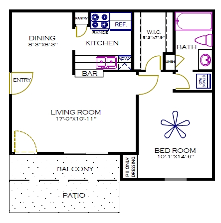 1 Bed, 1 Bath, 703-713 sq ftAvailability Details
