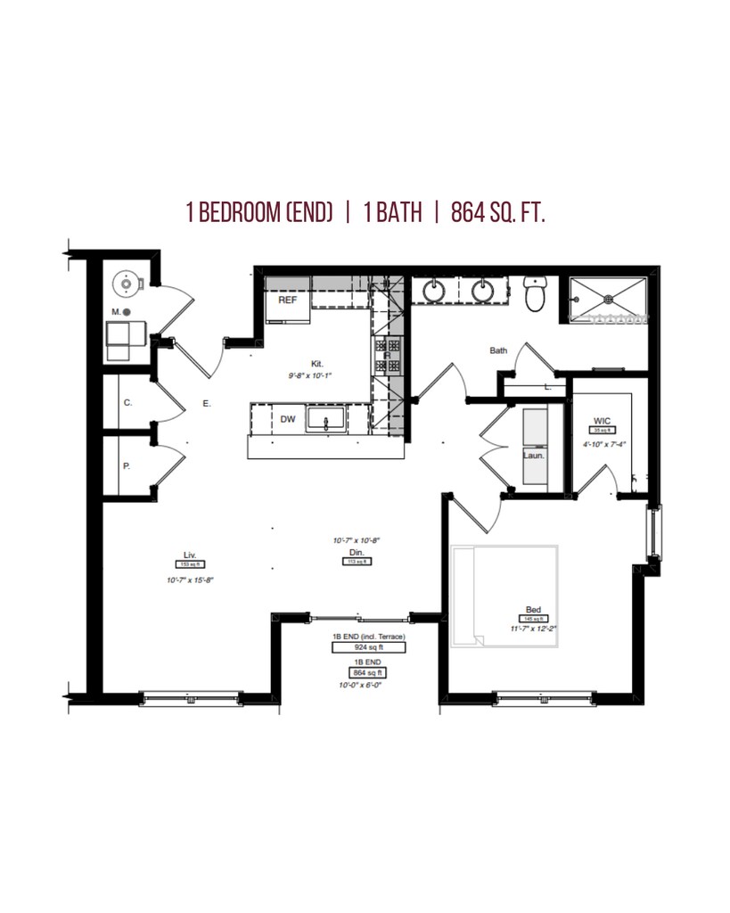 1 Bed, 1 Bath, 864 sq ftAvailable Dec 15Model Gallery