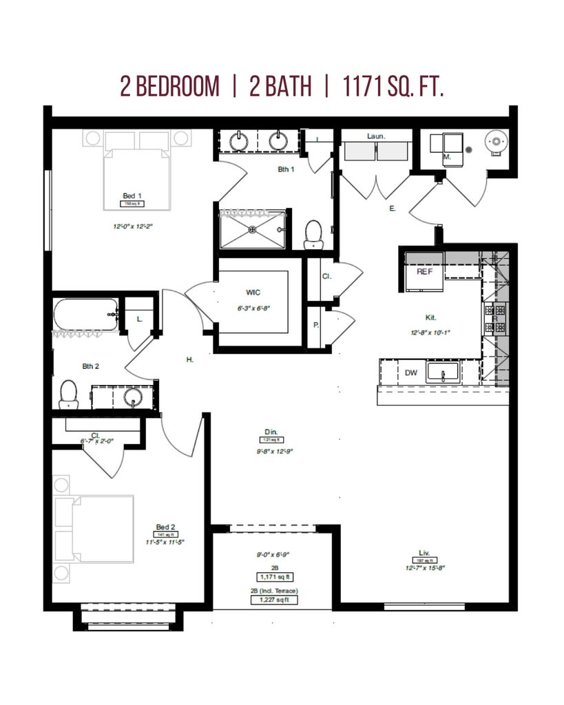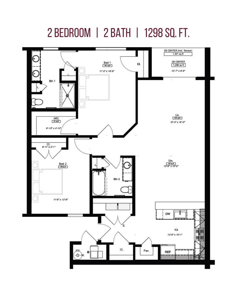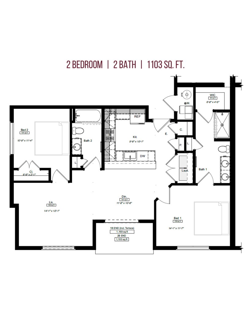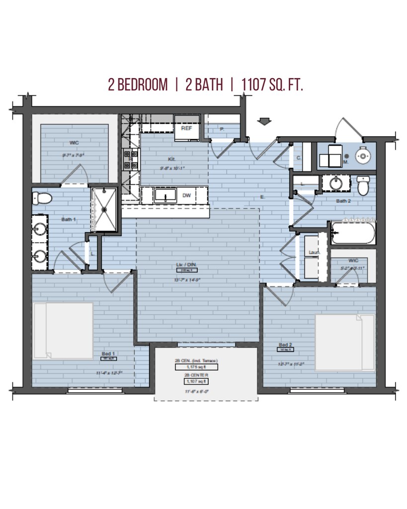 2 Beds, 2 Baths, 1103-1107 sq ftAvailable Dec 15Model Gallery