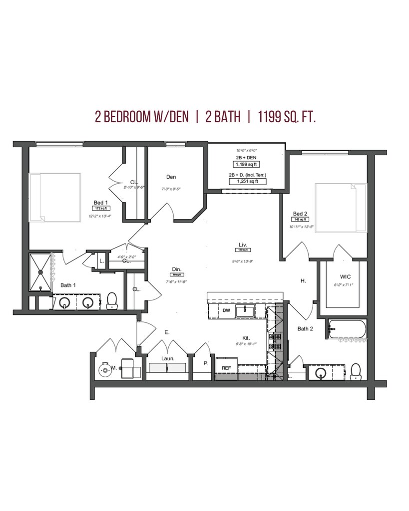Apartment Model: 2 BedroomFrom $2,3002 Bedroom, 2 Bath, 1103-1107 sq ftAvailable December 15, 2025![]()