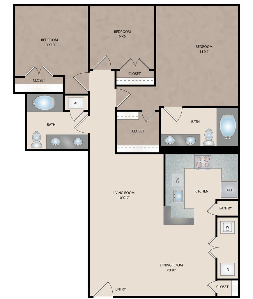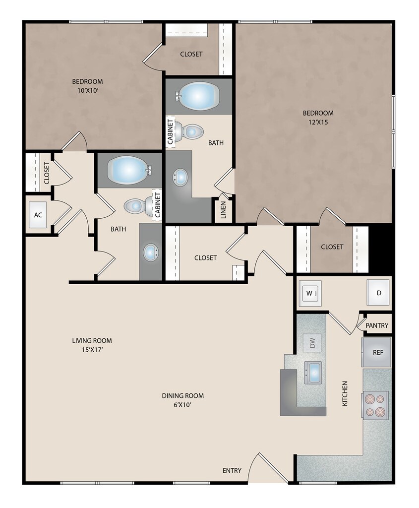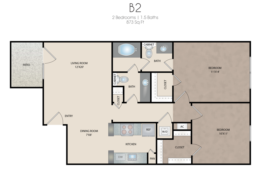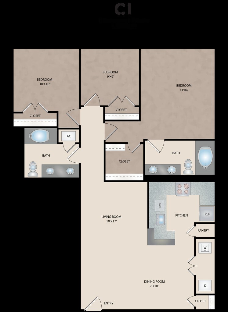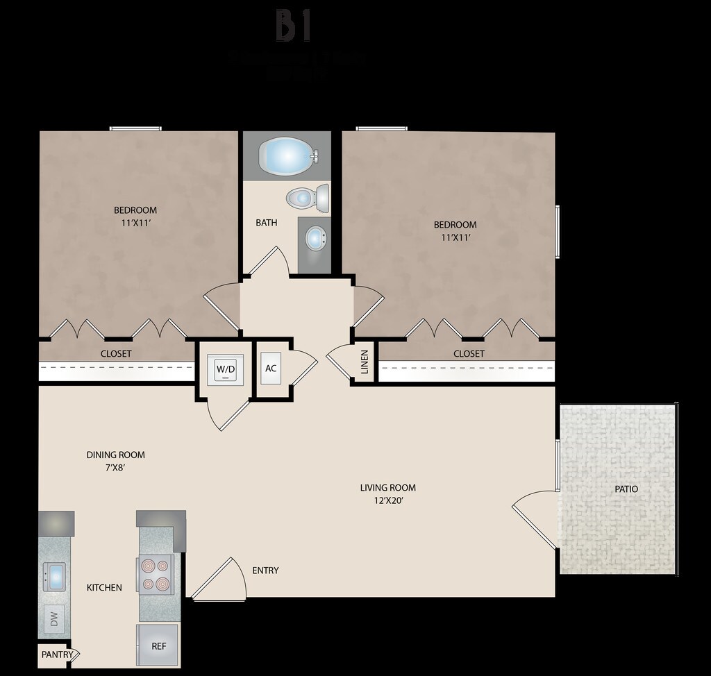 1 Bed, 1.5 Baths, 869 sq ftAvailable NowLargest 1 BedroomThis is the largest 1 Bedroom at this PropertyModel Gallery