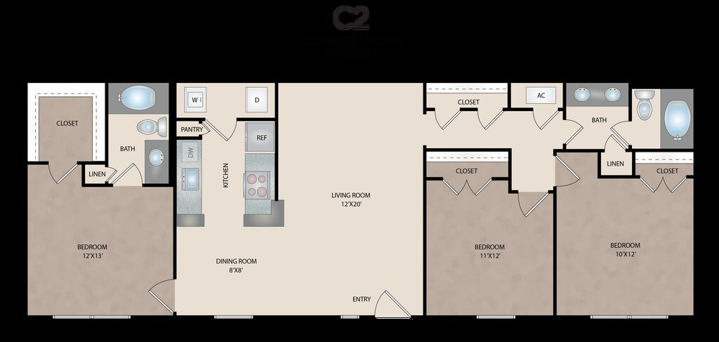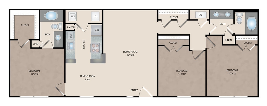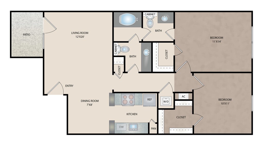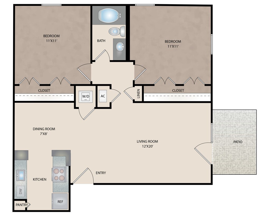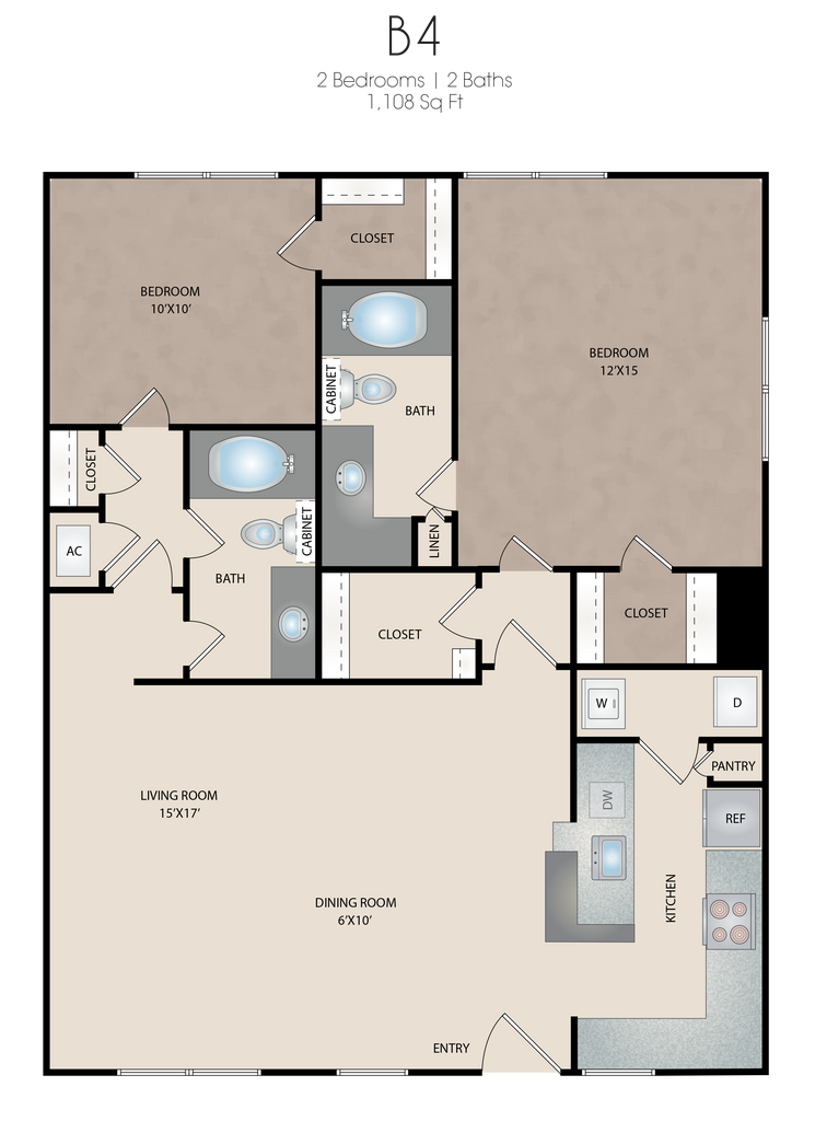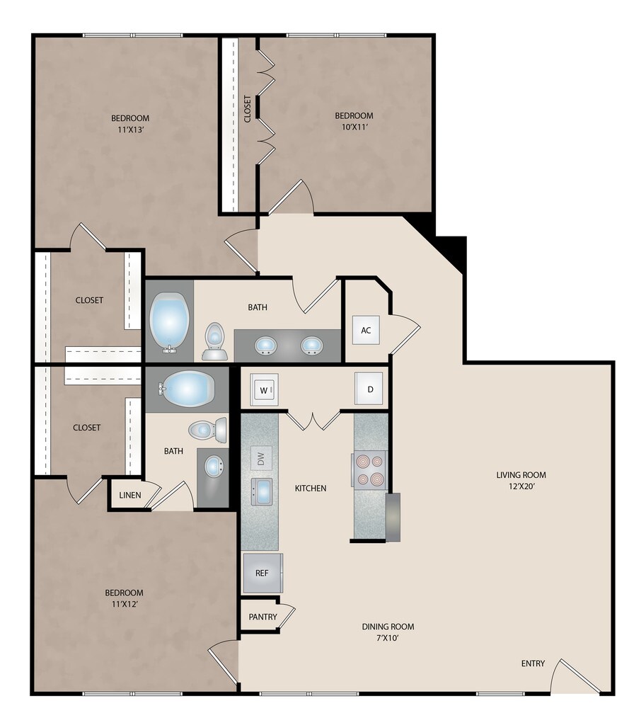 1 Bed, 1.5 Baths, 869 sq ftAvailable NowLargest 1 BedroomThis is the largest 1 Bedroom at this PropertyModel Gallery