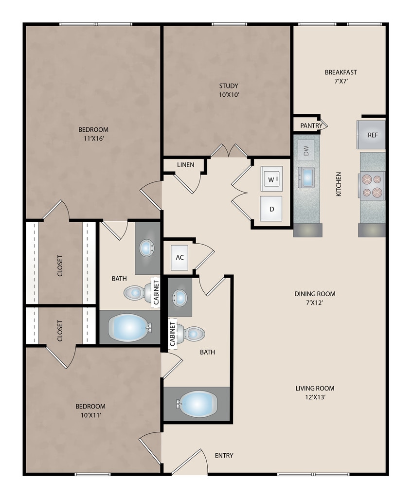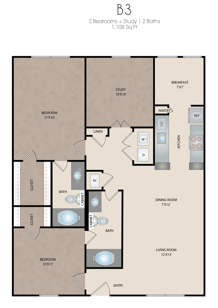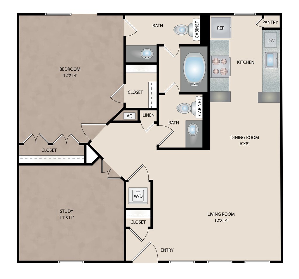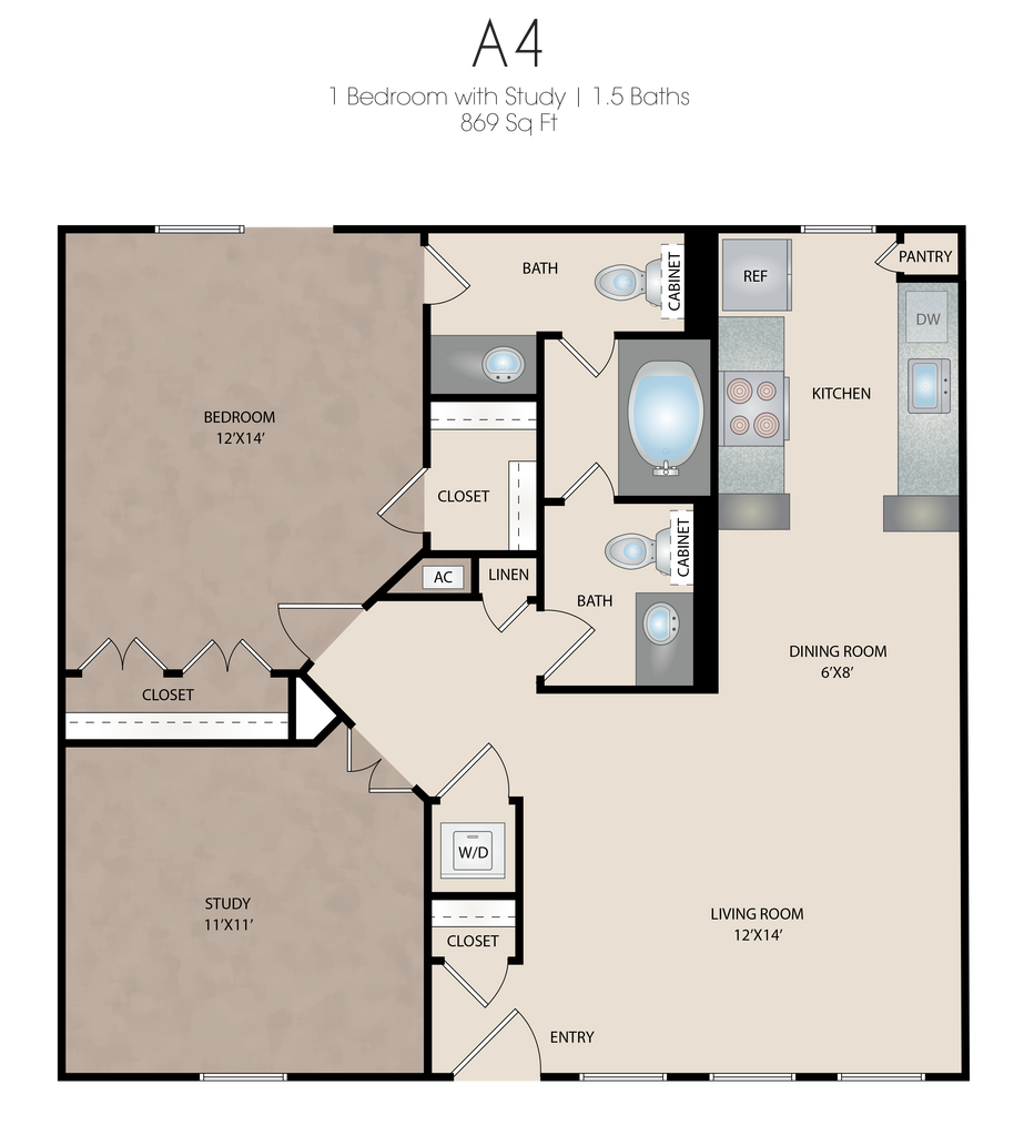 A3 - Floorplan 2 Apartment Unit: 1213Apartment Model: A3$1,4601 Bedroom, 1 Bath, 591 sq ftAvailable NowA4 STUDY