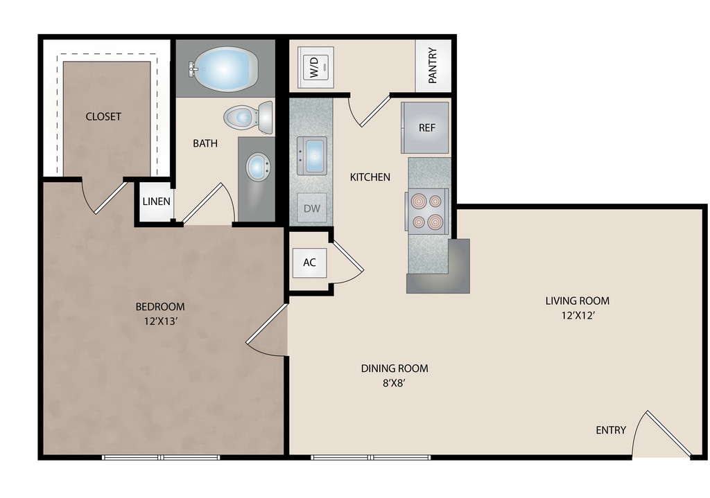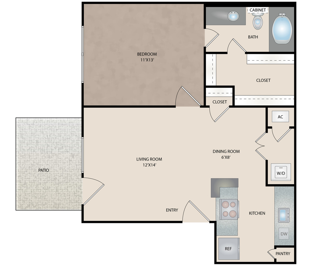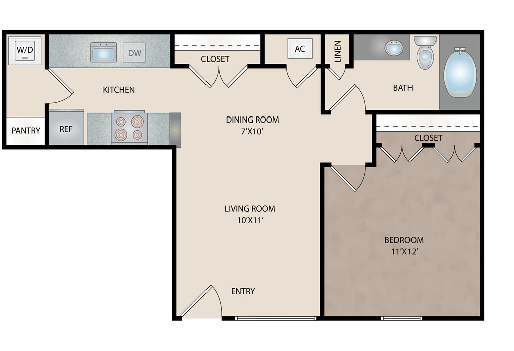 1 Bed, 1 Bath, 576 sq ftAvailable NowModel Gallery