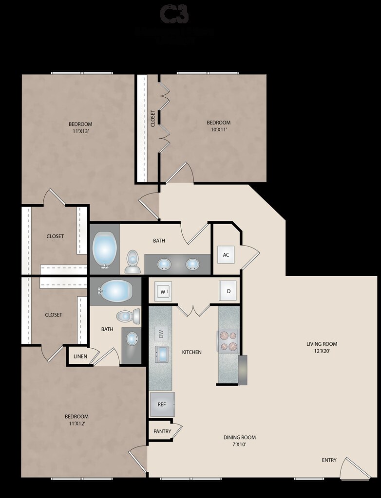A3 - Floorplan 1 Floor plans are artist's rendering. All dimensions are approximate. Actual product and specifications may vary in dimension or detail. Not all features are available in every rental home. Prices and availability are subject to change. Base rent is based on monthly frequency. Additional fees may apply, such as but not limited to package delivery, trash, water, amenities, etc. Deposits vary. Please see a representative for details.
