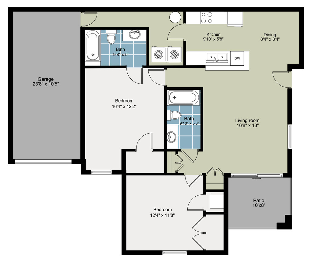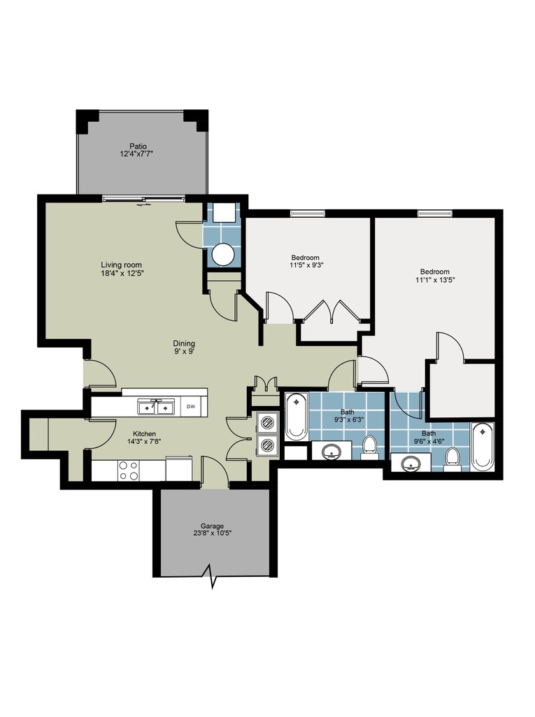 B1 Deluxe 2BR/2BR with Attached Garage