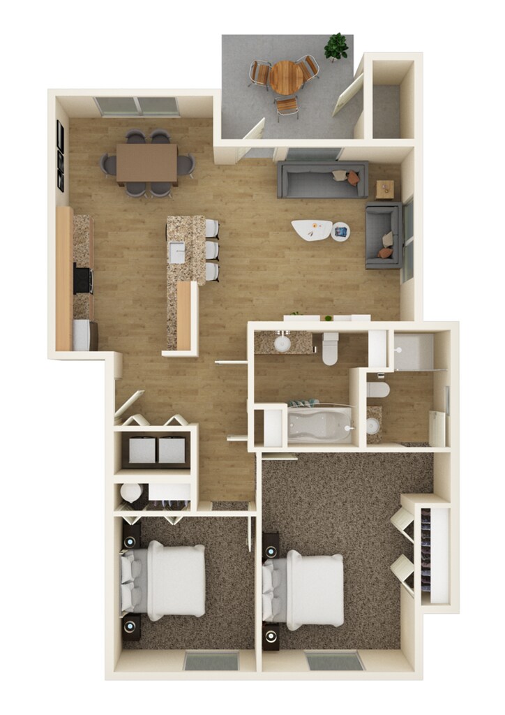 Apartment Model: Fulvous2 Bedroom, 2 Bath, 1002 sq ftUnavailableFulvous - Floorplan 1 Alabio