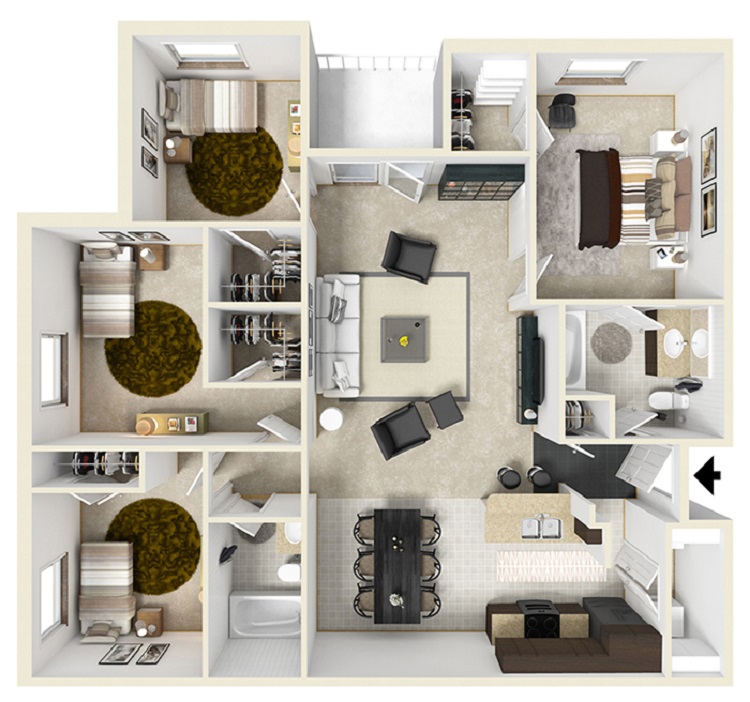 Three Bedroom - Floorplan 1 4 Bedrooms