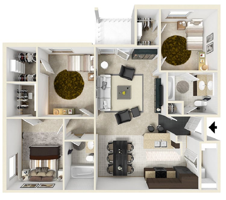 Apartment Model: Three Bedroom$1,2883 Bedroom, 2 Bath, 1079 sq ftAvailable Now![]()