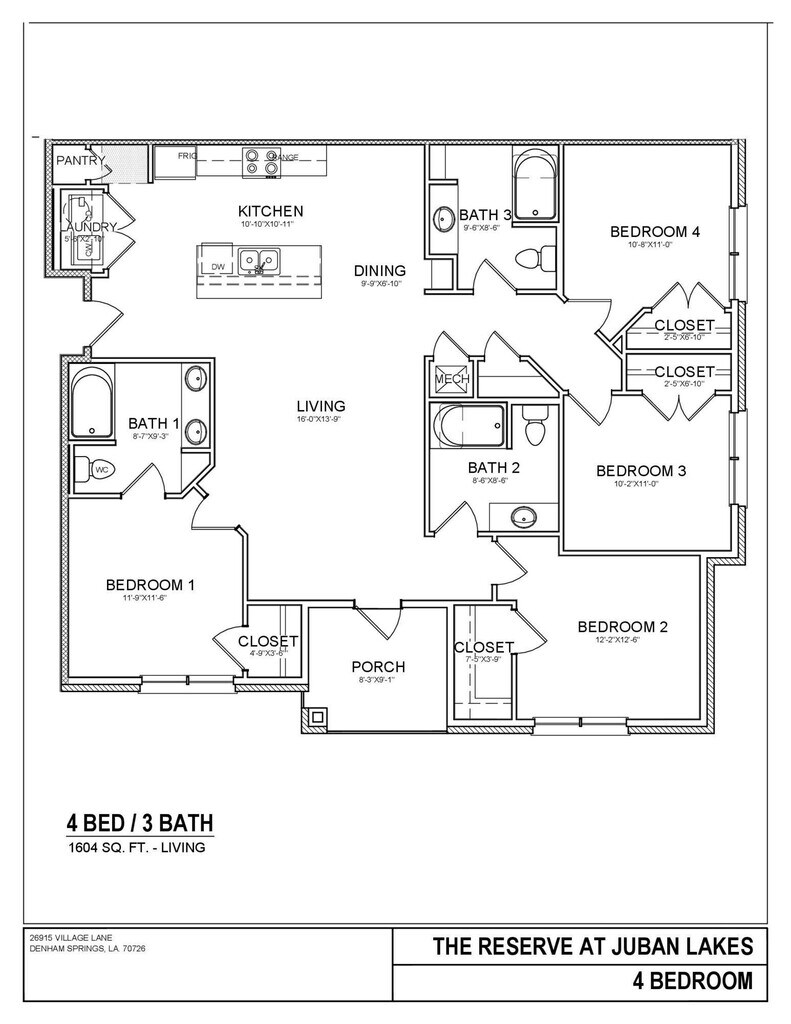 4 bedroom - 1604 SqFt. D - Floorplan 1
