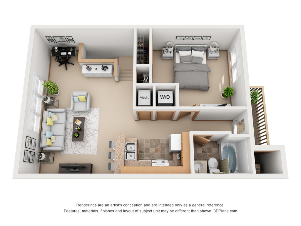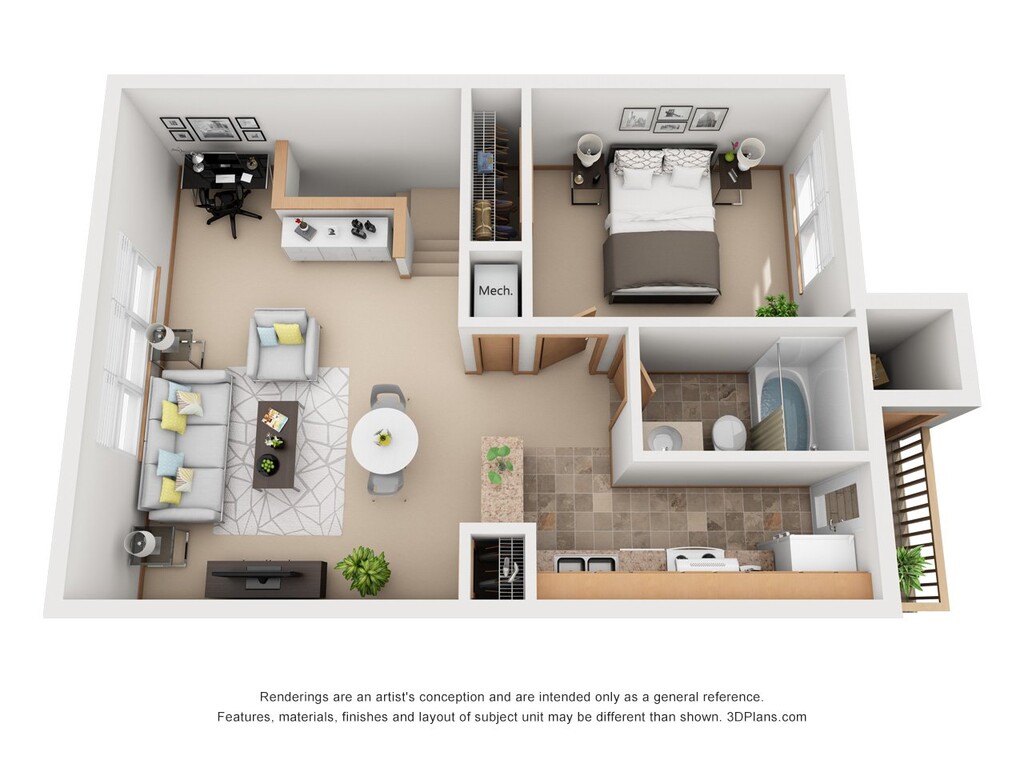 1 Bed, 1 Bath, 678 sq ftModel Gallery