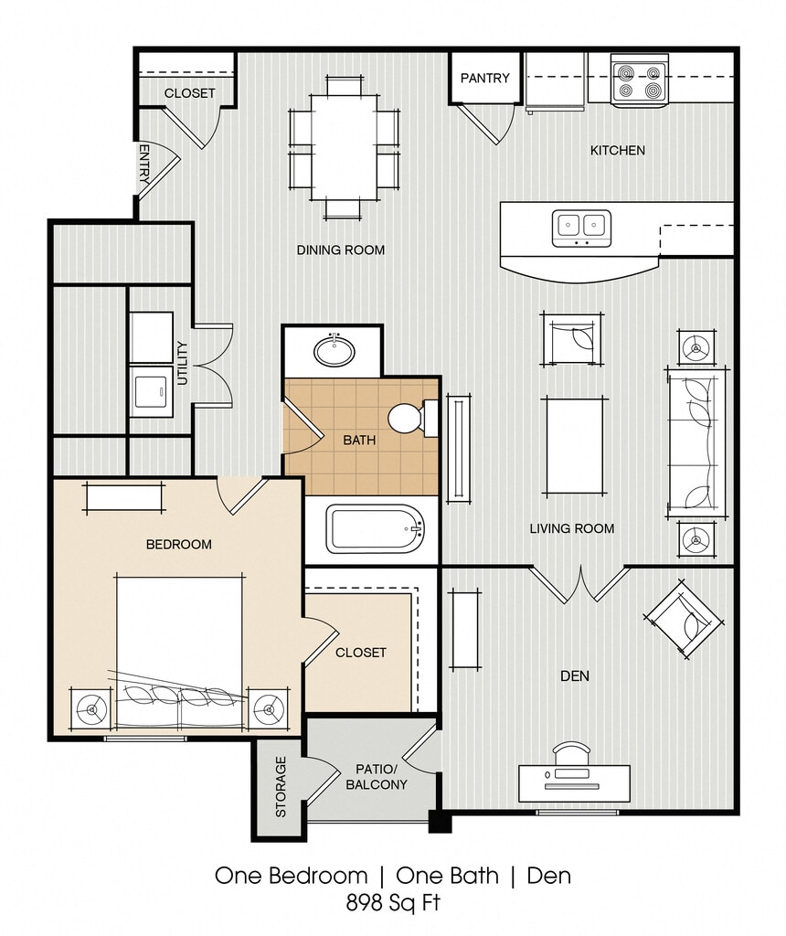 1 Bed, 1 Bath, 898 sq ftLargest 1 BedroomThis is the largest 1 Bedroom at this PropertyModel Gallery