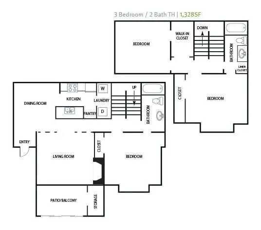 Apartment Model: B2From $1,2802 Bedroom, 2 Bath, 1096 sq ftAvailable NowFloor plans are artist's rendering. All dimensions are approximate. Actual product and specifications may vary in dimension or detail. Not all features are available in every rental home. Prices and availability are subject to change. Base rent is based on monthly frequency. Additional fees may apply, such as but not limited to package delivery, trash, water, amenities, etc. Deposits vary. Please see a representative for details.