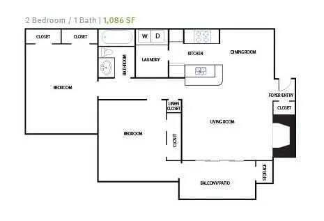 2 Beds, 1 Bath, 1086 sq ftAvailable NowModel Gallery