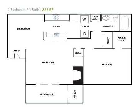 Apartment Model: A1From $9951 Bedroom, 1 Bath, 835 sq ftAvailable NowFloor plans are artist's rendering. All dimensions are approximate. Actual product and specifications may vary in dimension or detail. Not all features are available in every rental home. Prices and availability are subject to change. Base rent is based on monthly frequency. Additional fees may apply, such as but not limited to package delivery, trash, water, amenities, etc. Deposits vary. Please see a representative for details.