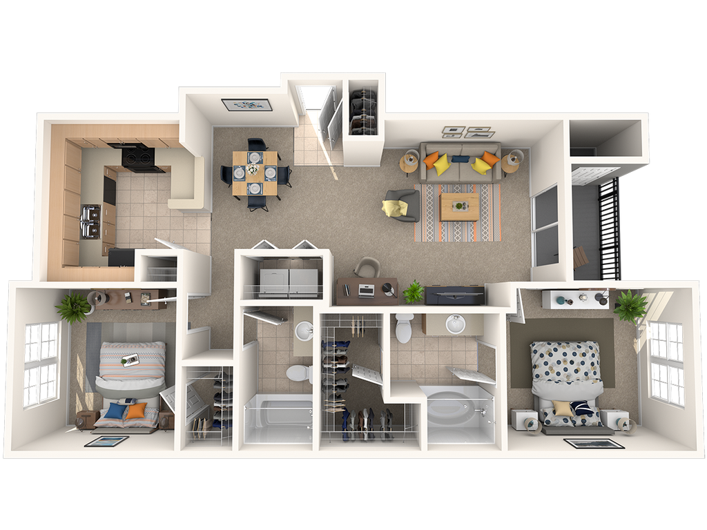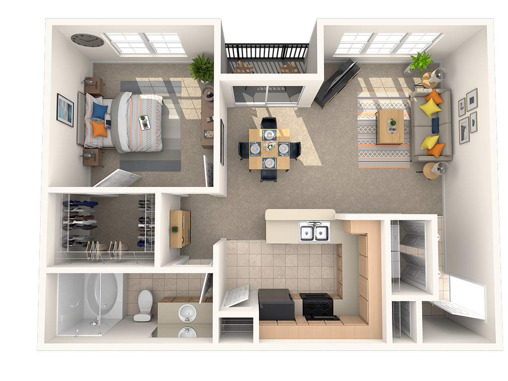 1 Bed, 1 Bath, 728 sq ftAvailable NowModel Gallery