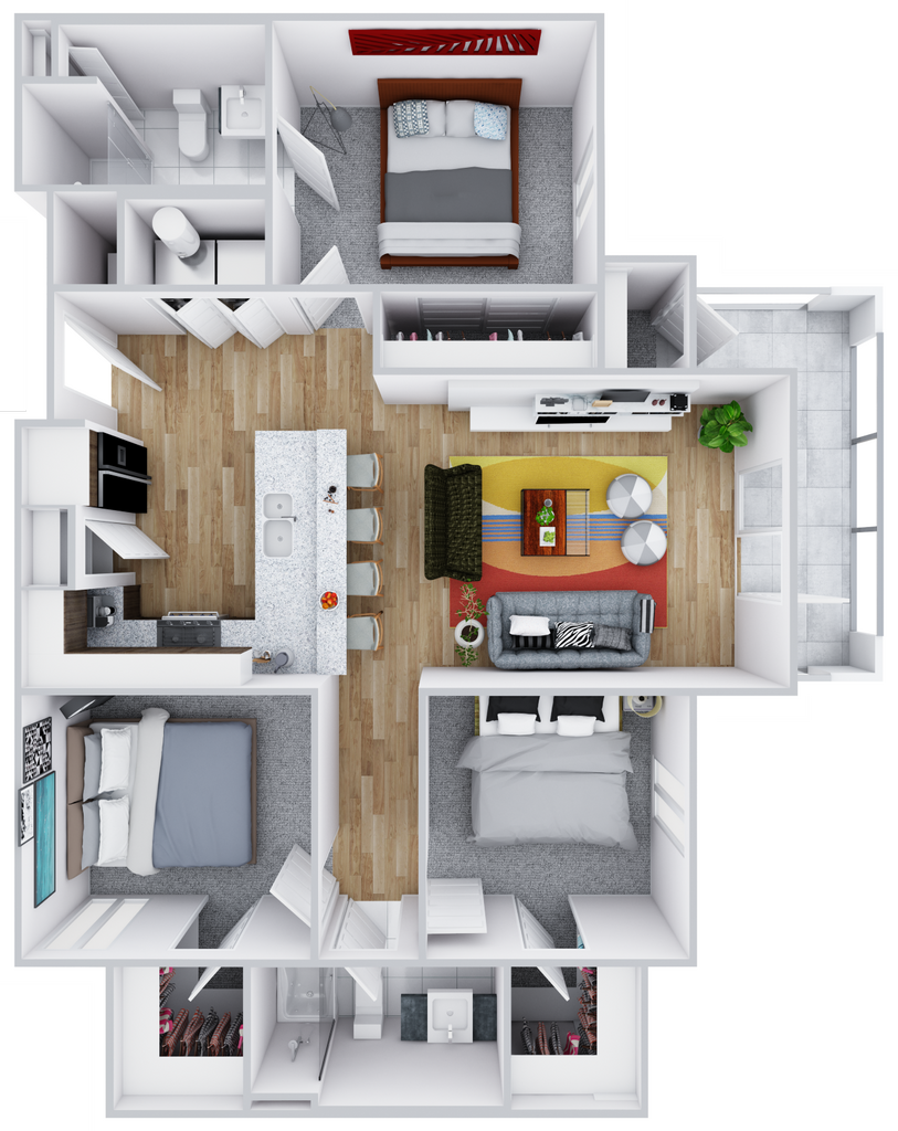 2 Beds, 2 Baths, 895 sq ftModel Gallery