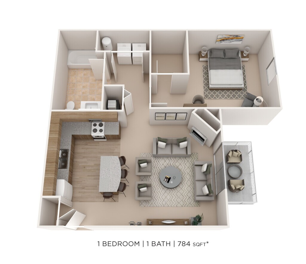 1 Bed, 1 Bath, 784 sq ftModel Gallery