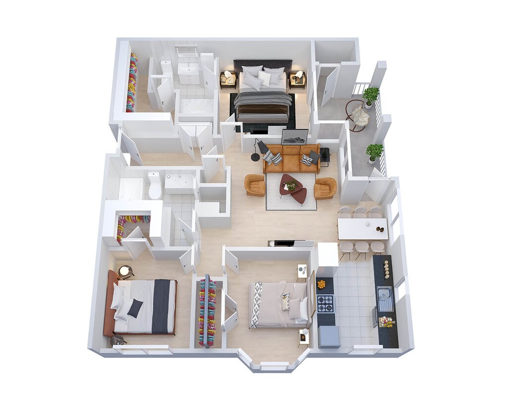2 Beds, 2 Baths, 1063 sq ftAvailable NowModel Gallery