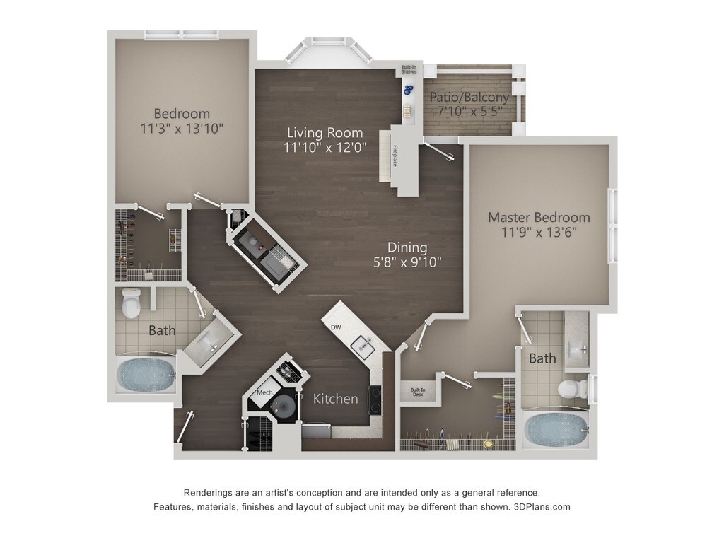 2 Beds, 2 Baths, 1301 sq ftAvailable NowLargest 2 BedroomThis is the largest 2 Bedroom at this PropertyModel Gallery