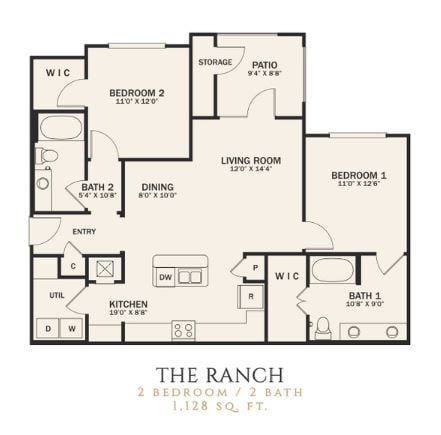 Apartment Model: The RanchFrom $1,5752 Bedroom, 2 Bath, 1128 sq ftAvailable NowFloorplansPhotos![]()