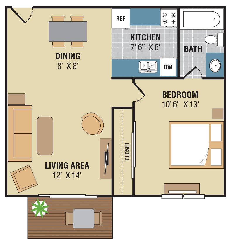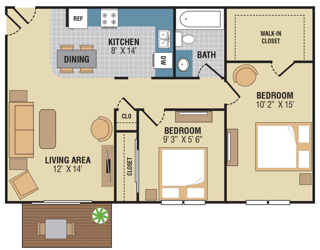 Apartment Model: 2 Beds, 1 bath2 Bedroom, 1 Bath, 780 sq ftUnavailable![]()