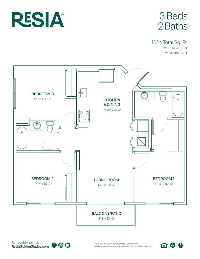 3 Beds, 2 Baths, 1024 sq ftModel Gallery