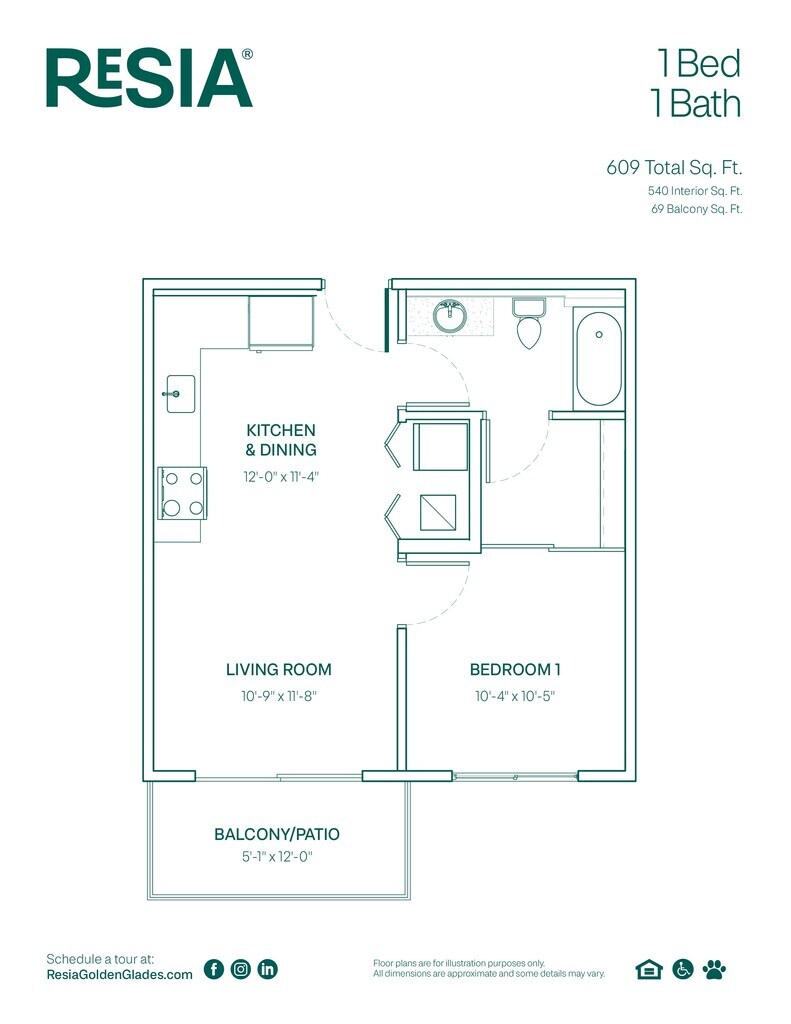 1 Bed, 1 Bath, 609 sq ftModel Gallery