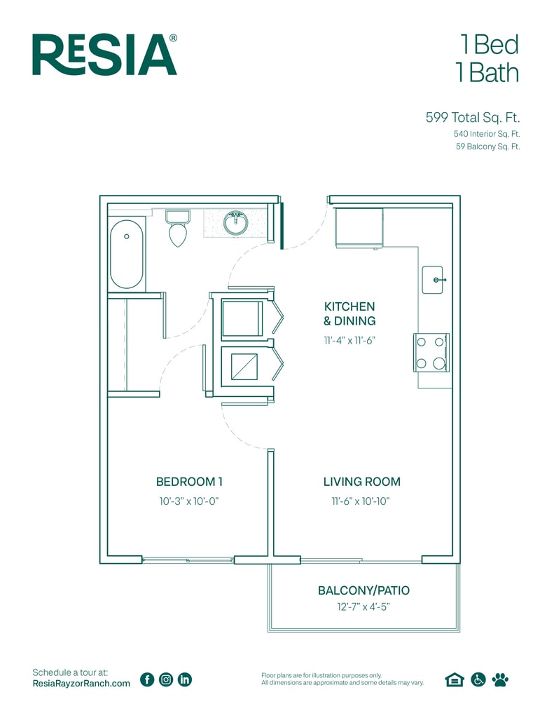 Apartment Model: 1 Bed 1 BathFrom $1,2501 Bedroom, 1 Bath, 599 sq ftAvailable Now![]()