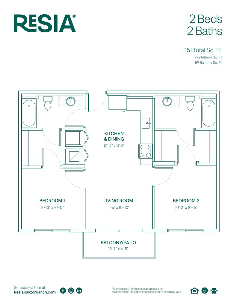 2 Beds, 2 Baths, 851 sq ftAvailable NowModel Gallery