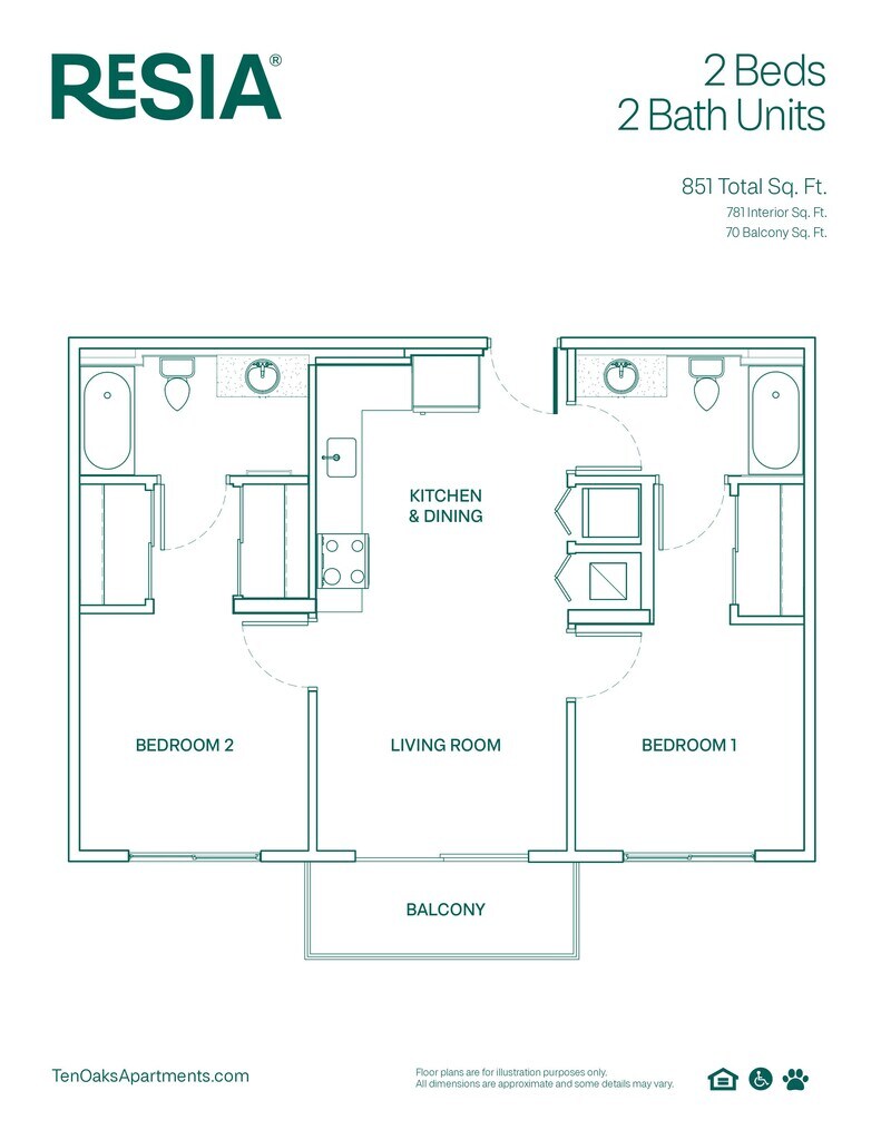 2 Beds, 2 Baths, 851 sq ftAvailable NowModel Gallery