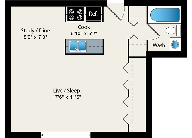 S12 - Floorplan 1 Apartment Unit: 0101Apartment Model: S12Studio, 1 Bath, 487 sq ftAvailable Now![]()