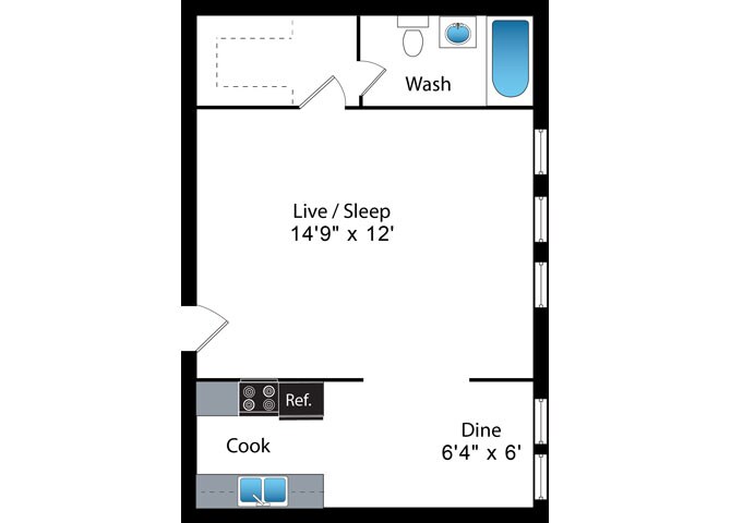 S10 - Floorplan 1 Apartment Unit: 0006Apartment Model: S10Studio, 1 Bath, 422 sq ftAvailable Now![]()