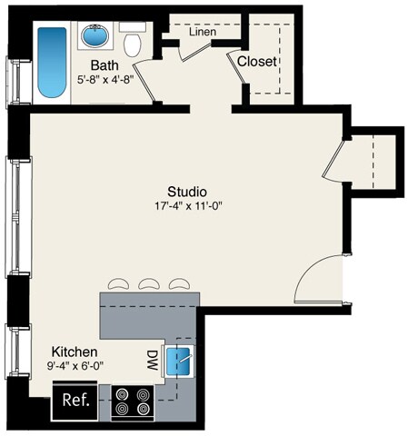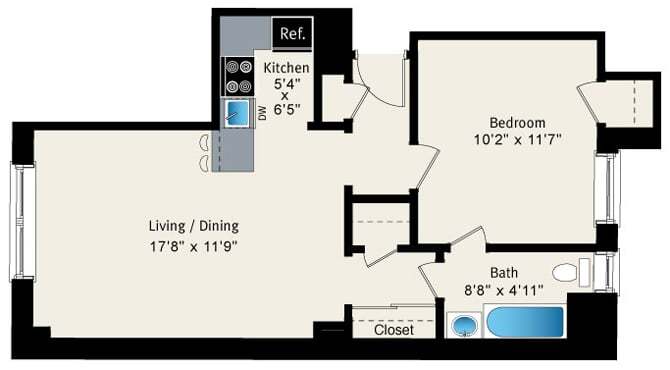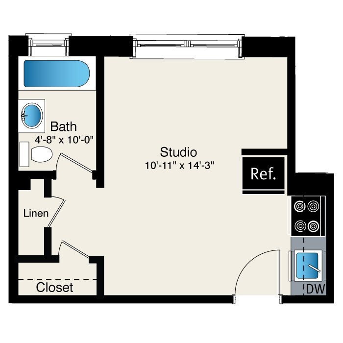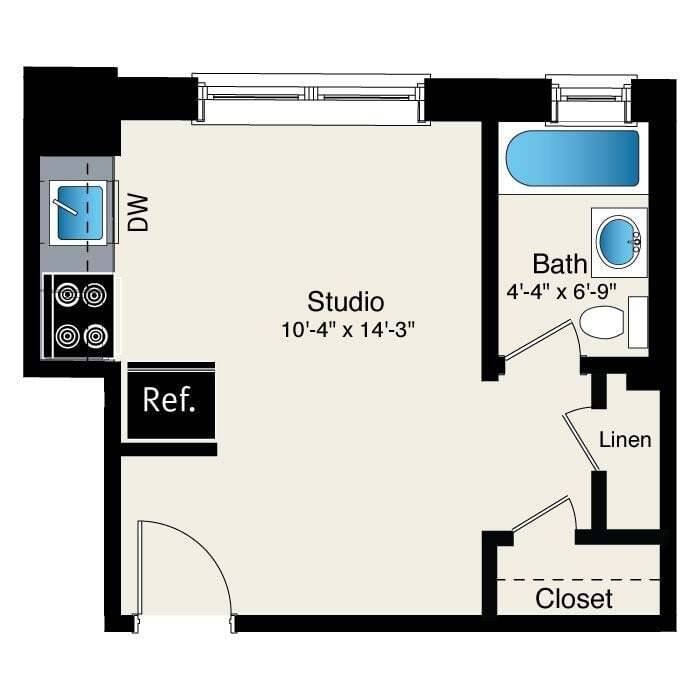Studio, 1 Bath, 267-277 sq ftAvailability Details