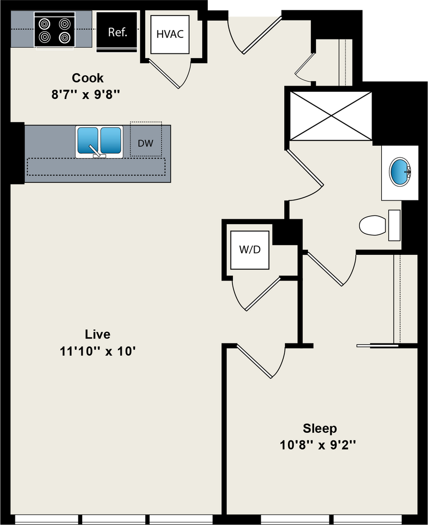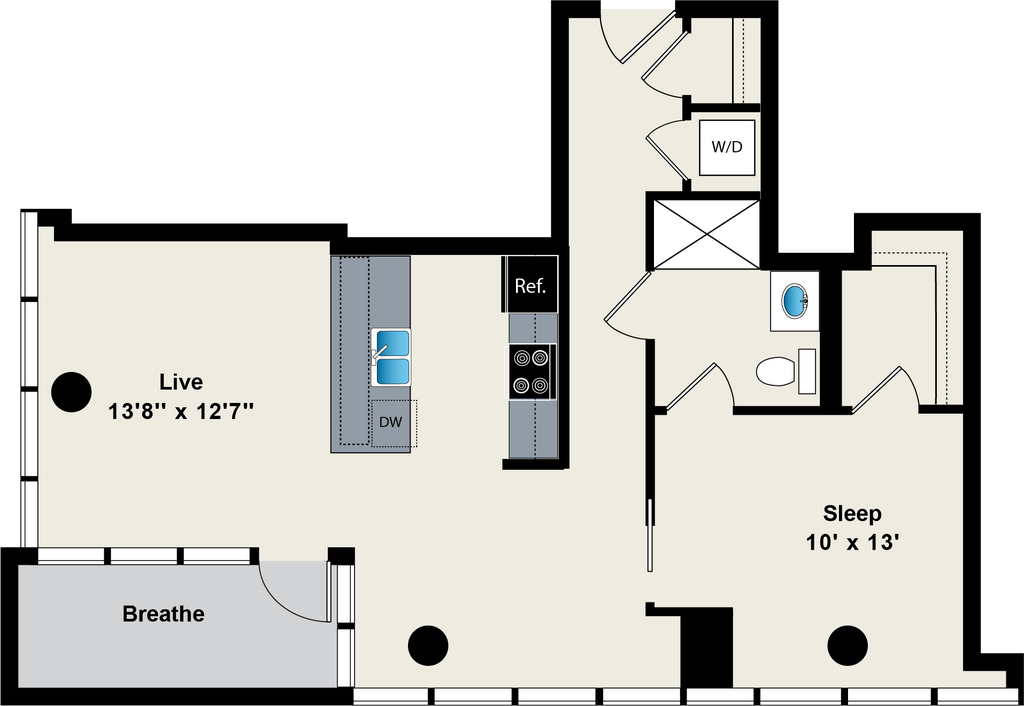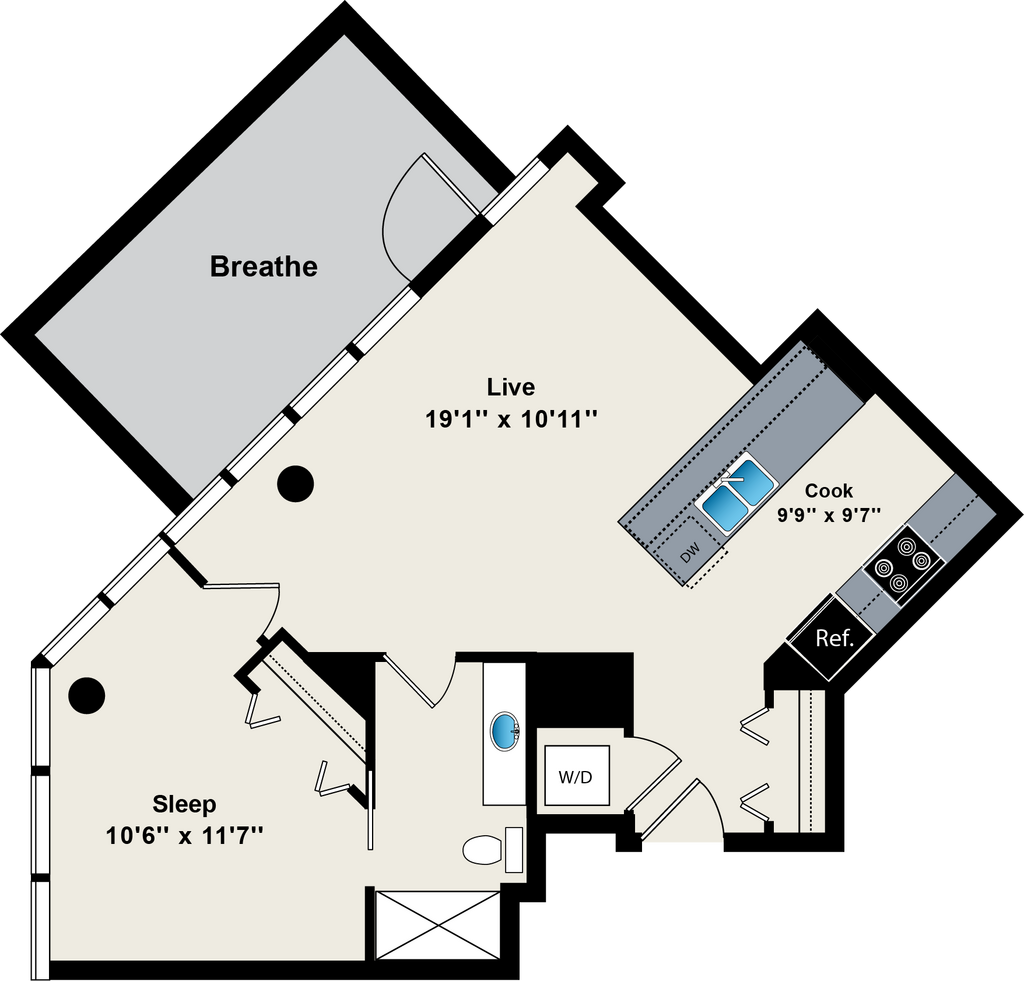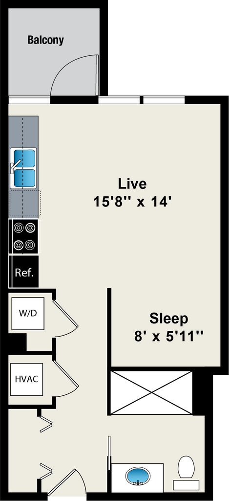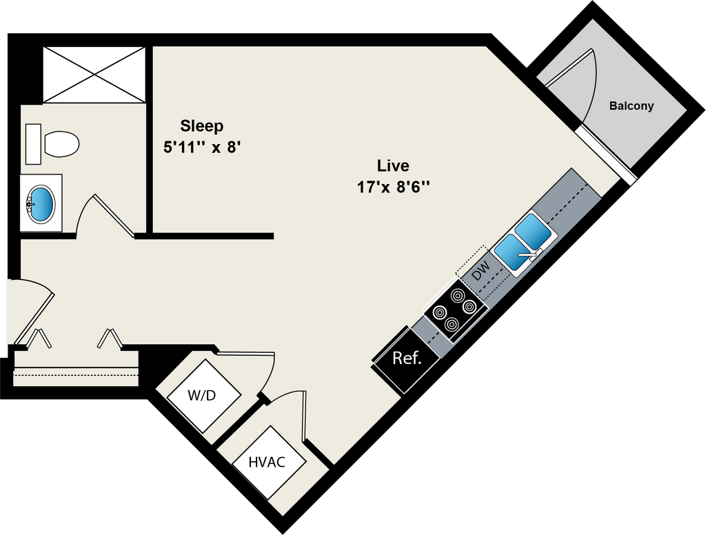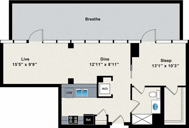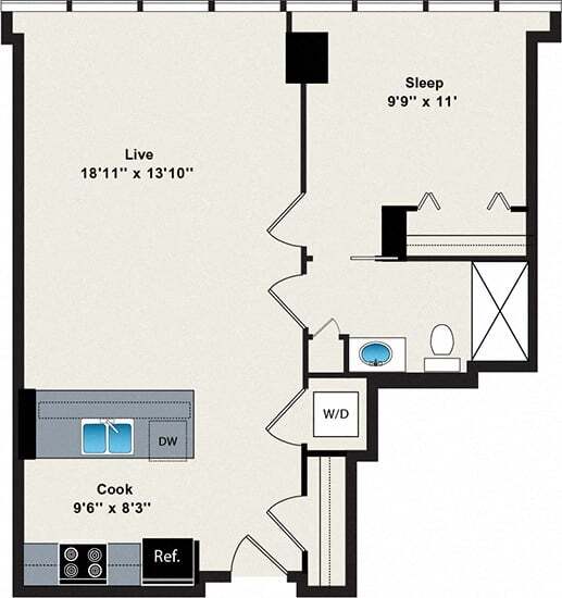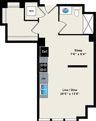 Studio, 1 Bath, 512 sq ftAvailable February 7, 2026Largest StudioThis is the largest Studio at this PropertyModel Gallery