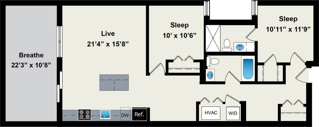 2 Beds, 2 Baths, 1015 sq ftAvailable NowModel Gallery