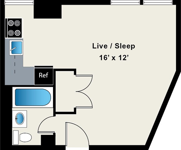 S7 - Floorplan 1 Apartment Unit: 006DApartment Model: S7Studio, 1 Bath, 360 sq ftAvailable February 22, 2026![]()