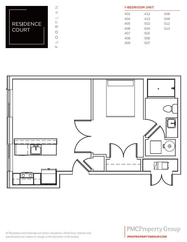 1 Bed, 1 Bath, 500 sq ftAvailability Details
