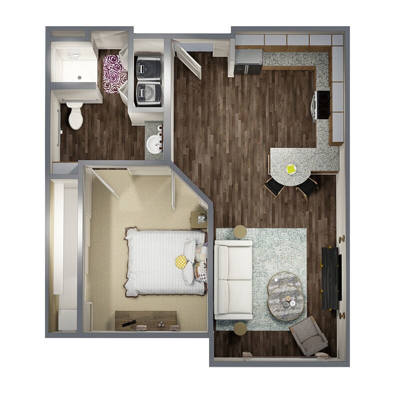 1 Bed, 1 Bath, 669 sq ftModel Gallery