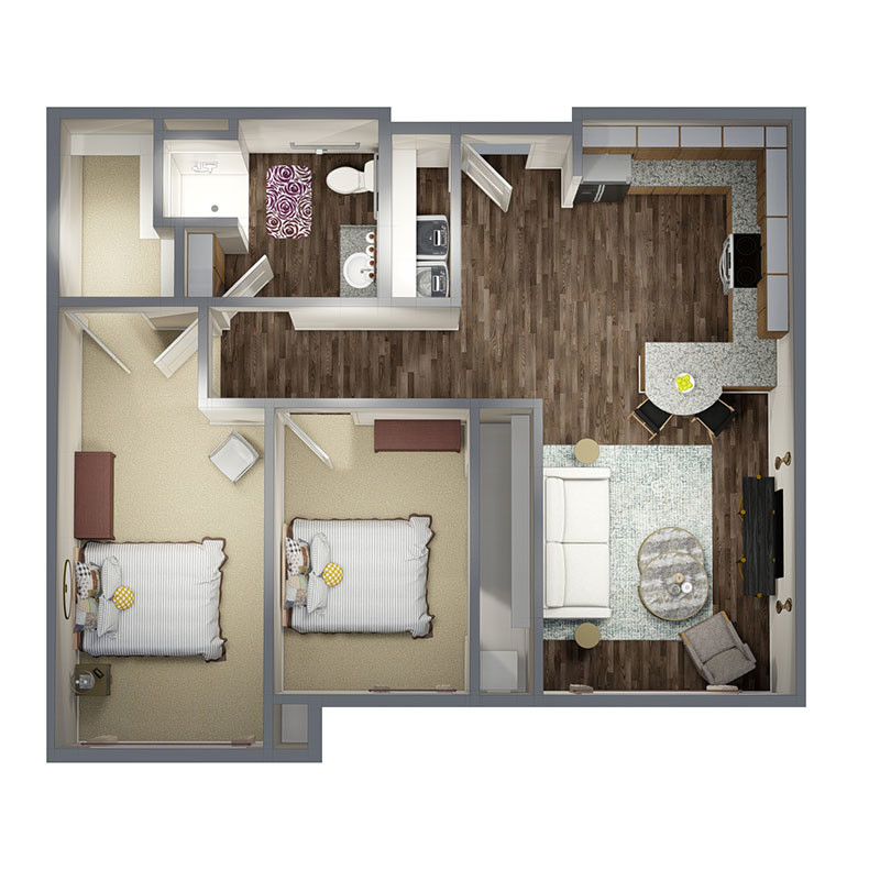 2 Beds, 1 Bath, 864 sq ftModel Gallery
