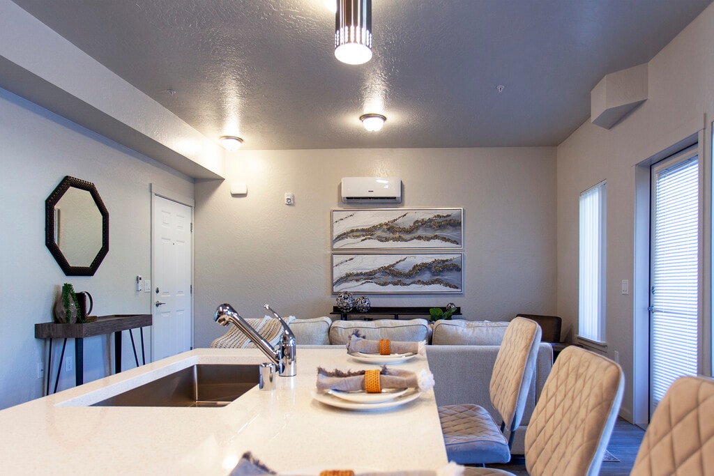 May 31, 2025The units here are the most spacious I’ve seen over many years of living in different apartments. The high ceilings make the units feel bigger than they already are, and the patio is fairly large as well as fenced in. Love that there is a nice gym, pool, and park. Appliances are high quality and the water gets hot fast. Other than some heavy steps every once in a while, I don’t have to hear everything my neighbors are doing due to poor insulation/sound proofing. Heat and A/C work well and ...insulation allows the temperature to remain constant. There are two reasons why I didn’t give a 5 star review. The first is that of the two times I have needed maintenance to stop by, both times they were late by at least an hour. The second is that if you get home in the evening, it is unlikely you will find any parking. Often have to park at least a couple buildings away.Read MoreReview from Apartments.com