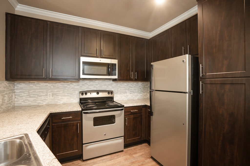 The Residence is a community offering large and spacious apartments situated in a premium location. We offer one and two bedroom luxury homes with spacious kitchens, plenty of cabinets and pantry areas, extra large walk in closets. Full size washer and dryer are part of our appliance package provided. For your enjoyment we have two resort style pools, two fitness studios, walking trails and grilling pavillions to enjoy.