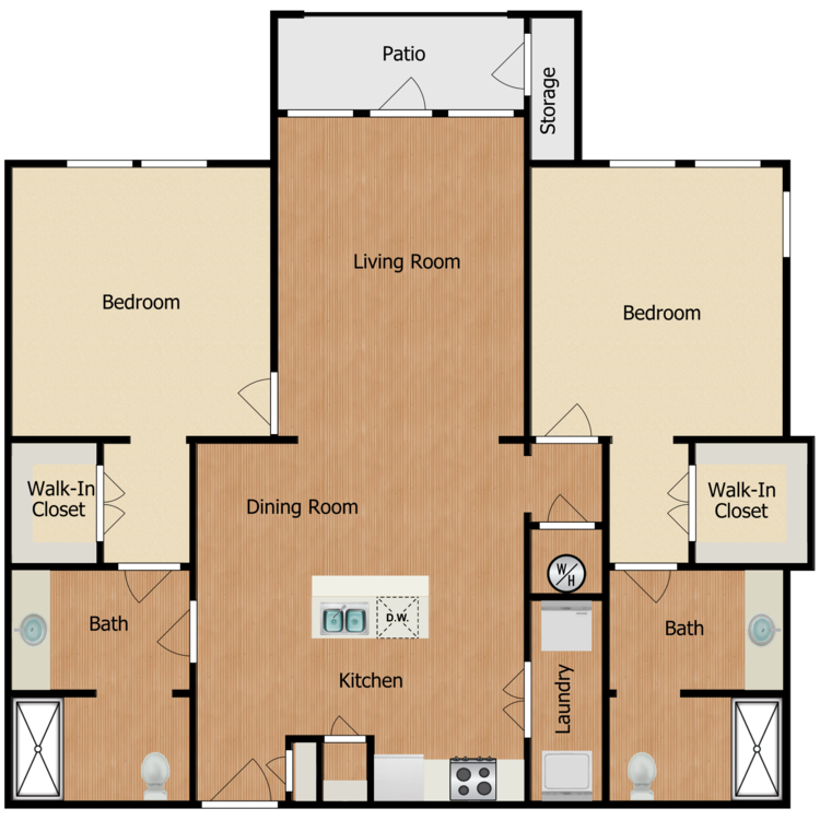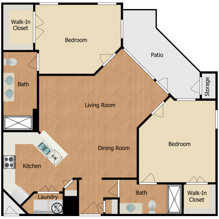 Apartment Model: 2X2From $1,3592 Bedroom, 2 Bath, 1126 sq ftAvailable Now![]()