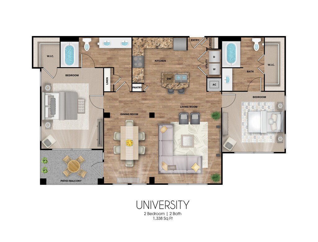 1 Bed, 1 Bath, 974 sq ftAvailable NowLargest 1 BedroomThis is the largest 1 Bedroom at this PropertyModel Gallery