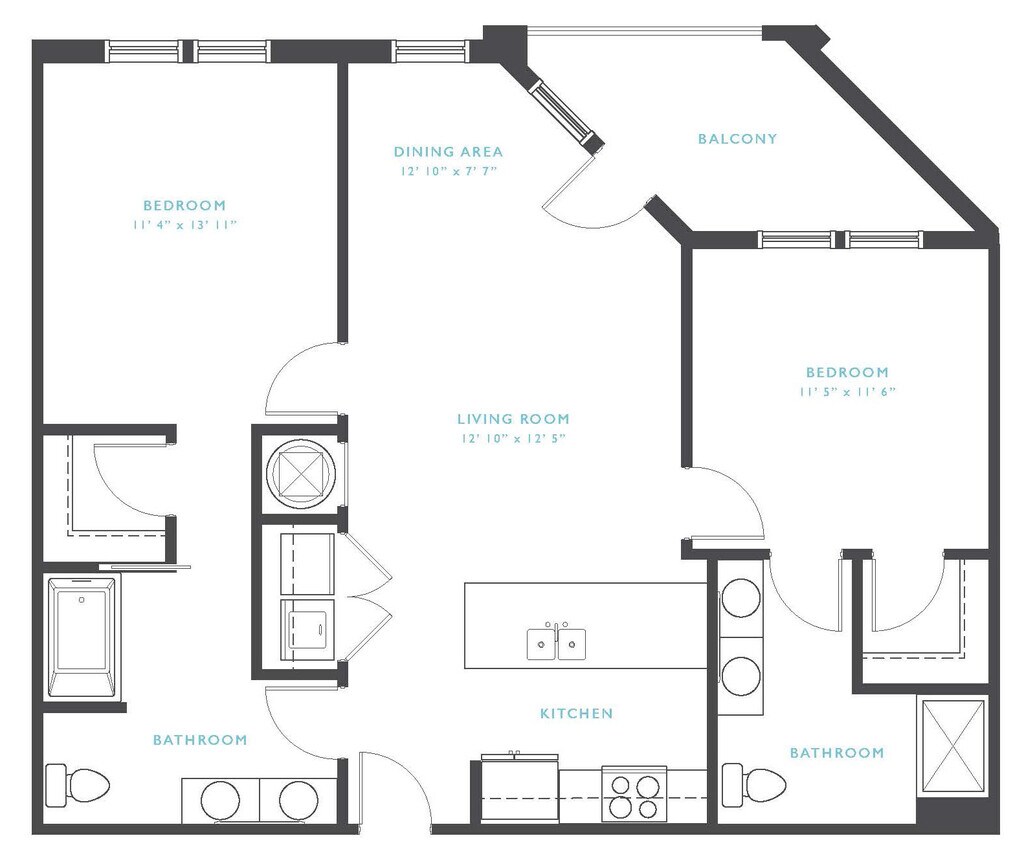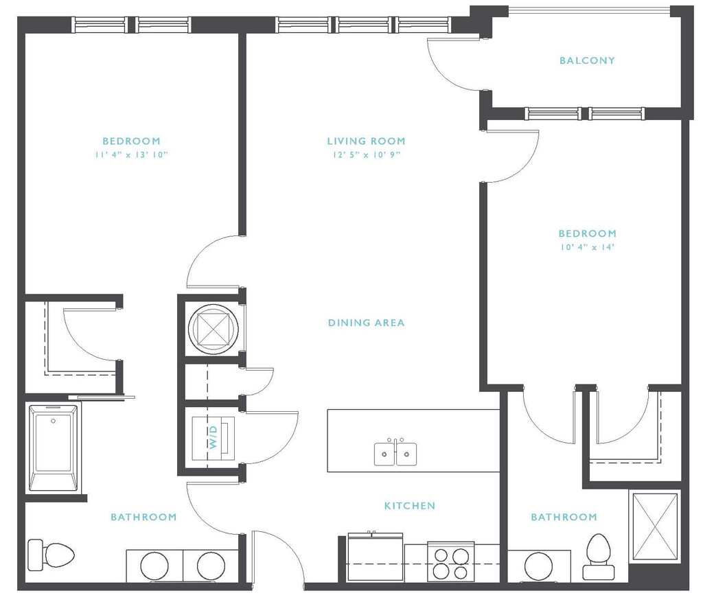 2 Beds, 2 Baths, 1264 sq ftAvailable NowLargest 2 BedroomThis is the largest 2 Bedroom at this PropertyModel Gallery