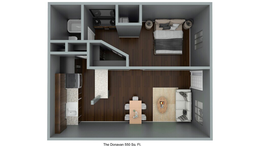 Apartment Model: The Donovan Premium$1,1891 Bedroom, 1 Bath, 550 sq ftAvailable Now![]()