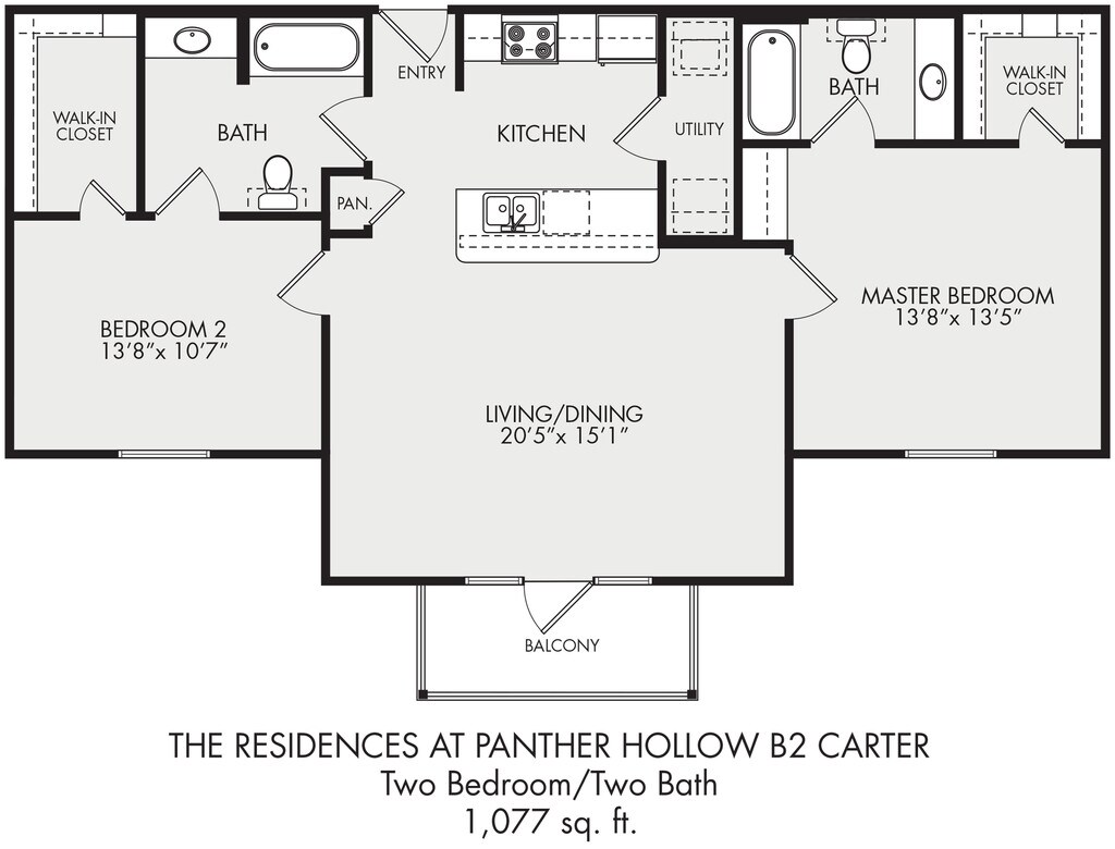 Residences At Panther Hollow offers Studio to 2 Bedroom apartments starting from $1,150 and having 575–1,171 sq ft. Here is the current pricing and availability: