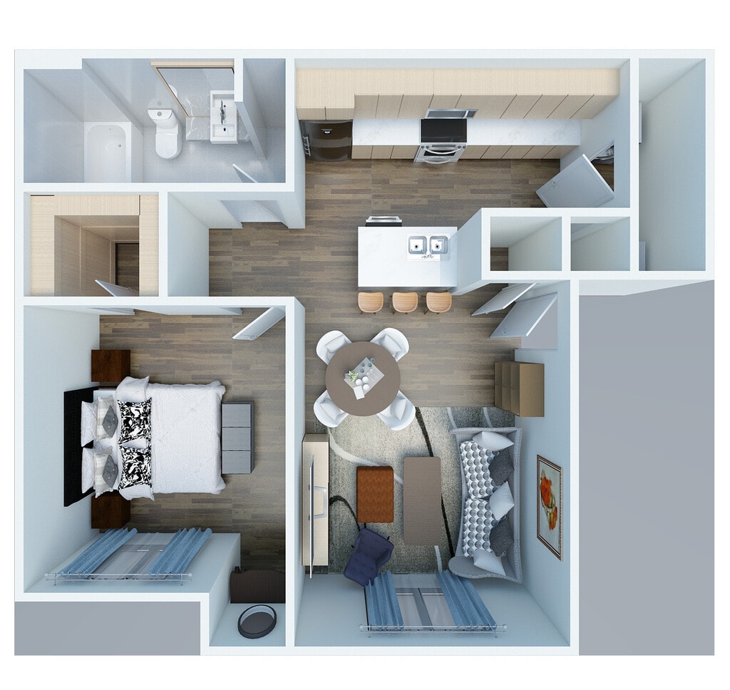 Apartment Model: Strait$1,135Studio, 1 Bath, 575 sq ftAvailable NowFloor plans are artist's rendering. All dimensions are approximate. Actual product and specifications may vary in dimension or detail. Not all features are available in every rental home. Please see a representative for details.